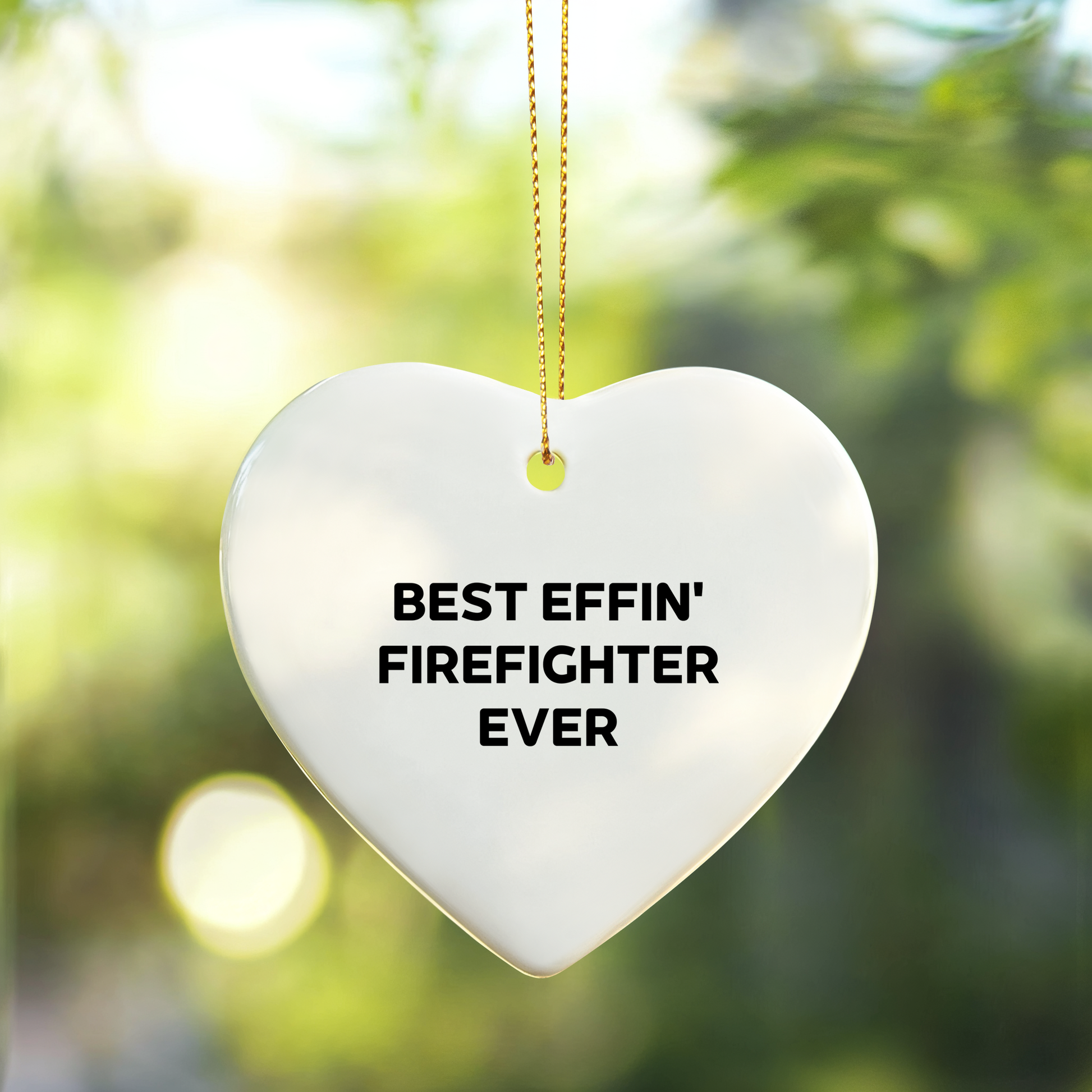 Funny Firefighter Gifts from Men to Firefighter Friends and Coworkers this Christmas Unique Ornament, Best Effin' Firefighter Ever Heart Shaped Decoration