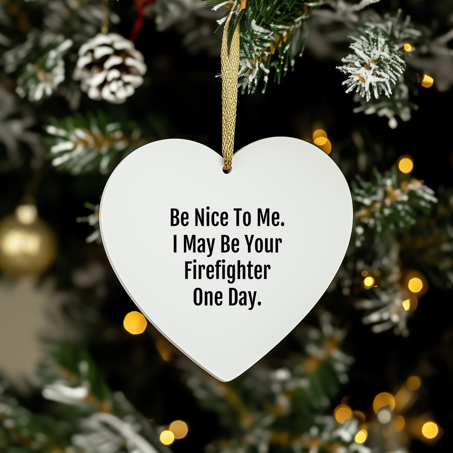 Funny Firefighter Heart Ornament, Gifts from Family for Firefighters, Be Nice To Me One Day
