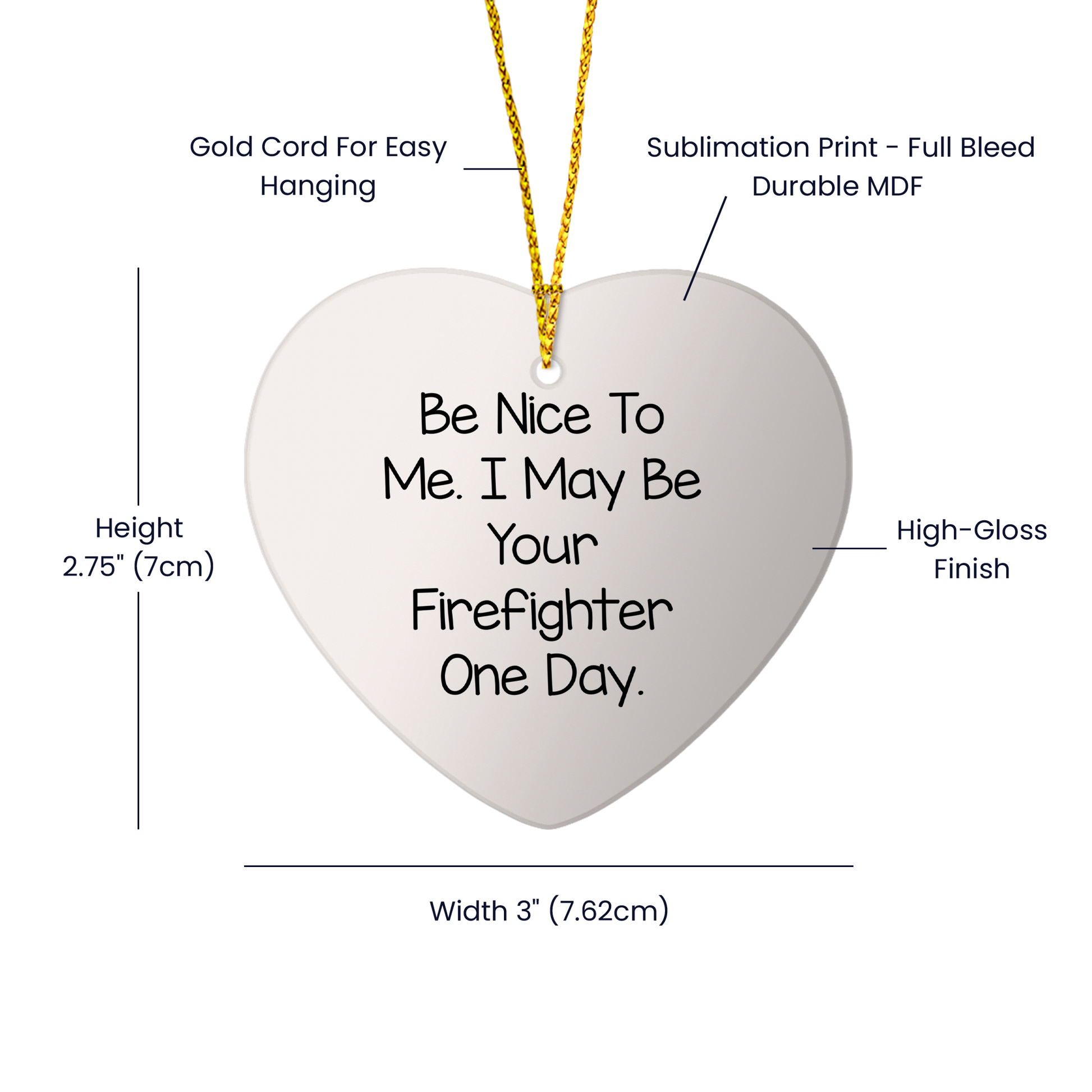 Funny Gifts from Friends and Family for Firefighter Heart Ornament, Christmas Unique Gifts, Be Nice To Me I May Be Your Firefighter One Day