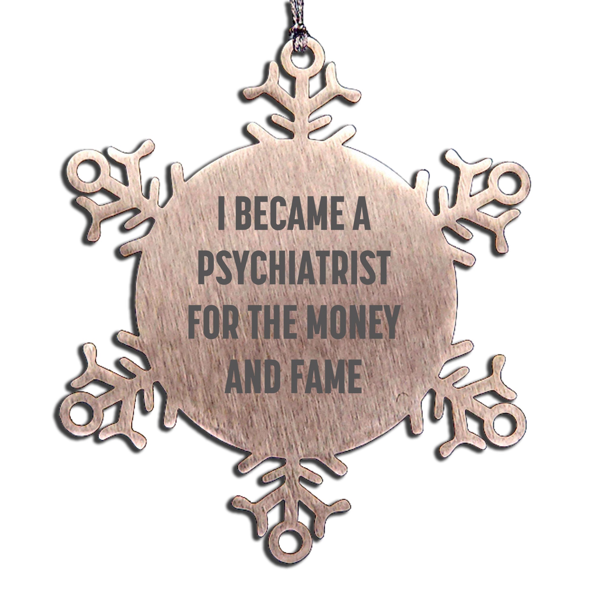 Funny Psychiatrist Gifts, Snowflake Ornaments for Christmas Unique Gifts from Men to Women, Coworkers, or Family Members, 'I Became A Psychiatrist For The Money And Fame' Snowflake Decoration
