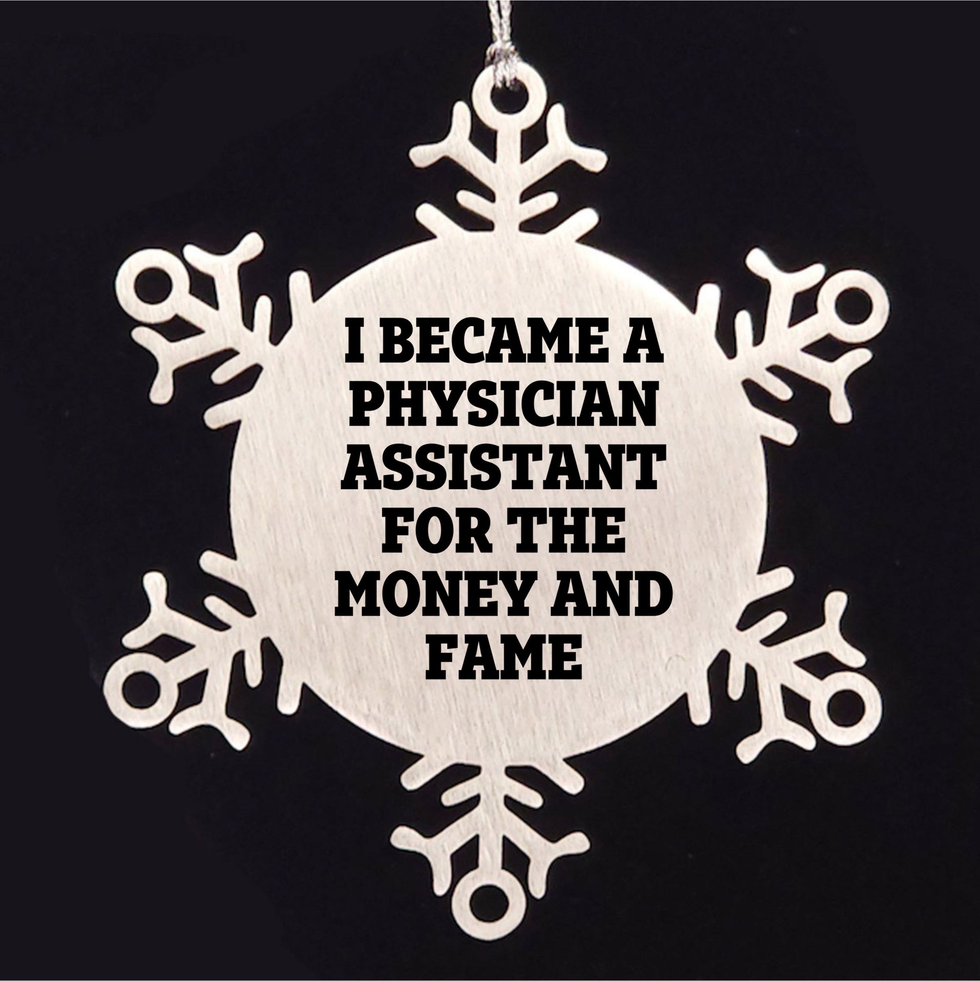 Looking for the perfect holiday gift for a Physician Assistant, or a special ornament to celebrate your own career? This stainless steel snowflake ornament is a charming choice for any home or office. Made with premium materials, it’s shatterproof, sturdy, and built to last, measuring 3.14 inches in diameter for an elegant display. Featuring the tongue-in-cheek quote “I Became A Physician Assistant For The Money And Fame,” it playfully nods to the realities of the profession while showcasing humor and dedication. Ideal for gifting to Physician Assistant friends or coworkers, it’s a thoughtful way to show appreciation for their hard work. The snowflake design adds a stylish touch to any space, making it perfect not just for Christmas but for any occasion.