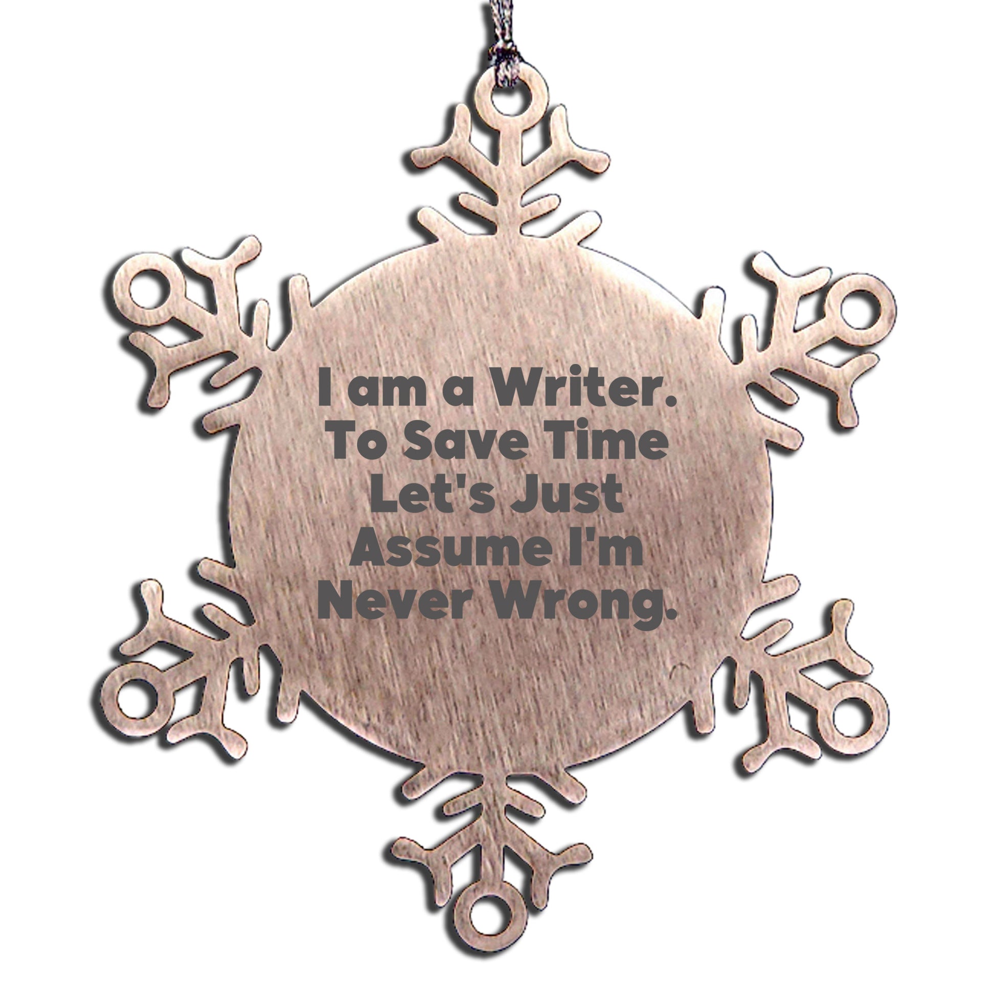 Funny Writer Gifts, Snowflake Ornaments for Writers, Christmas Unique Gifts from Friends, Snowflake Ornament, I'm Never Wrong, Writer Snowflake