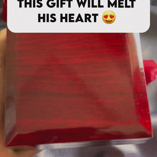 Your piece is lovingly packaged in a complimentary soft touch box for easy gifting. Elevate your presentation by upgrading to the mahogany style luxury box, which features a brilliant LED spotlight.