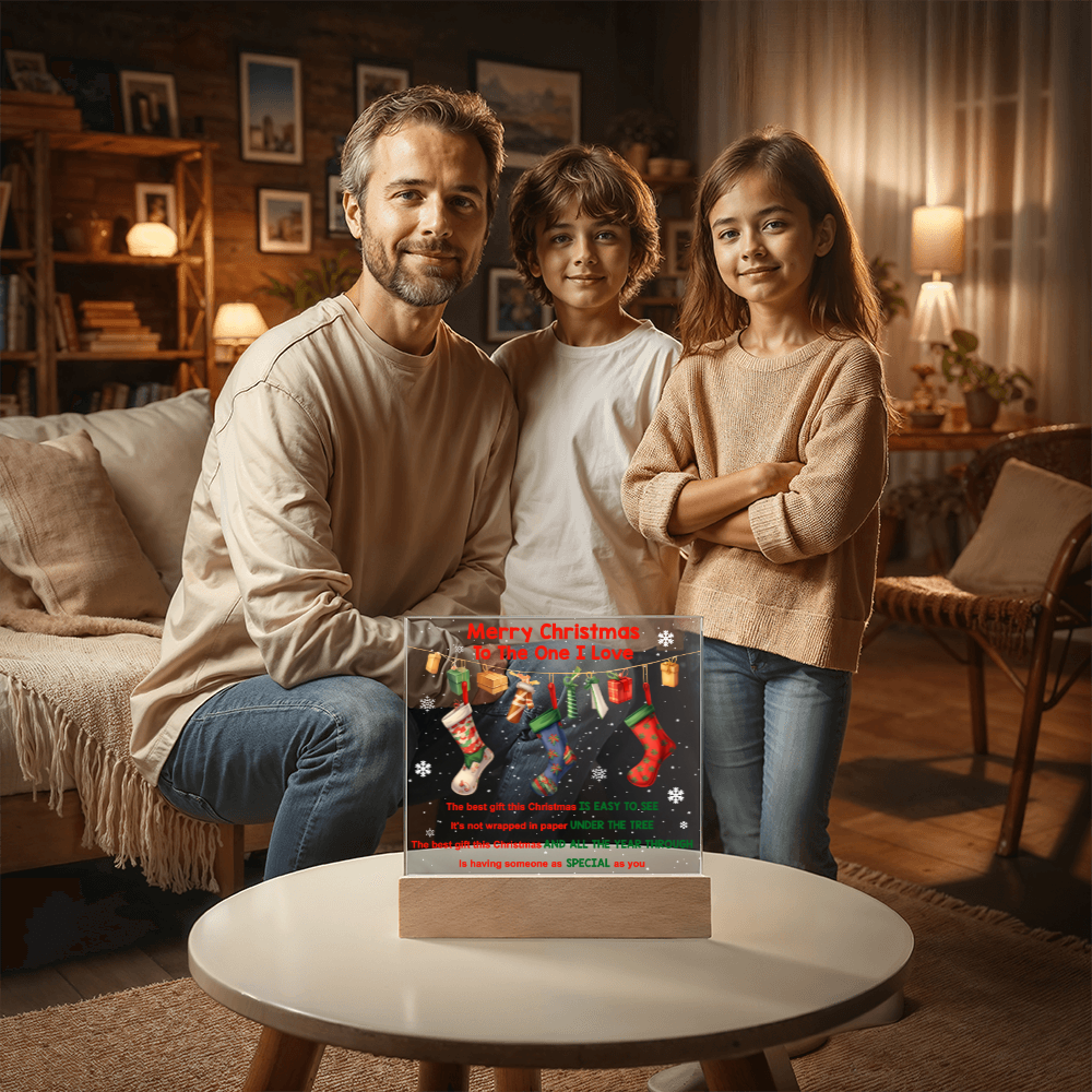 Celebrate love and togetherness this season with our “Merry Christmas to the One I Love” acrylic plaque — a glowing reminder that the best gifts in life aren’t wrapped under the tree. Featuring colorful Christmas stockings, festive presents, and a heartfelt poem, this luminous display perfectly captures the warmth of holiday romance.
