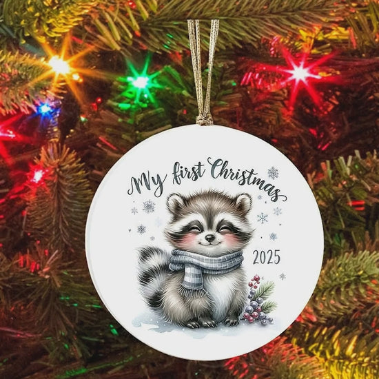 My First Christmas 2025 Raccoon Ornament – Baby’s First Christmas Keepsake, Cute Newborn Gift, Durable MDF Ornament with Gold Cord