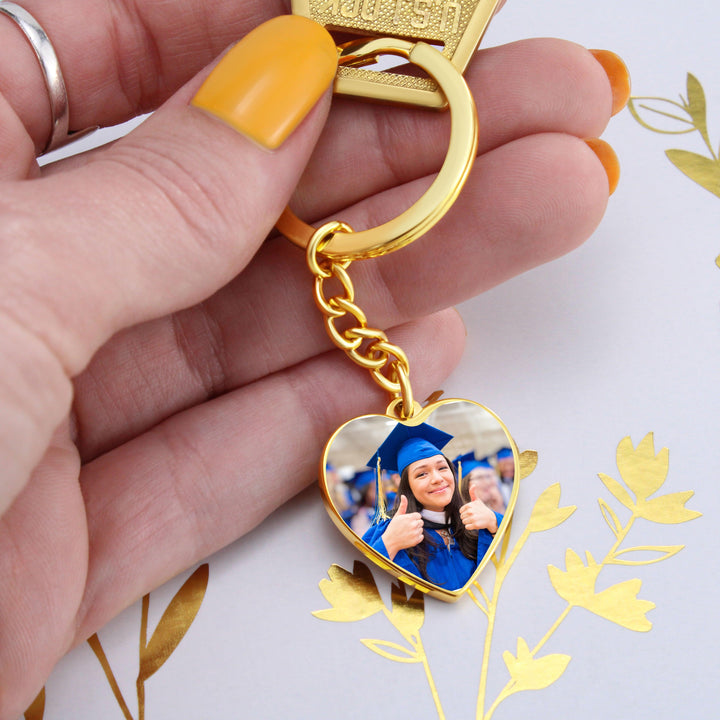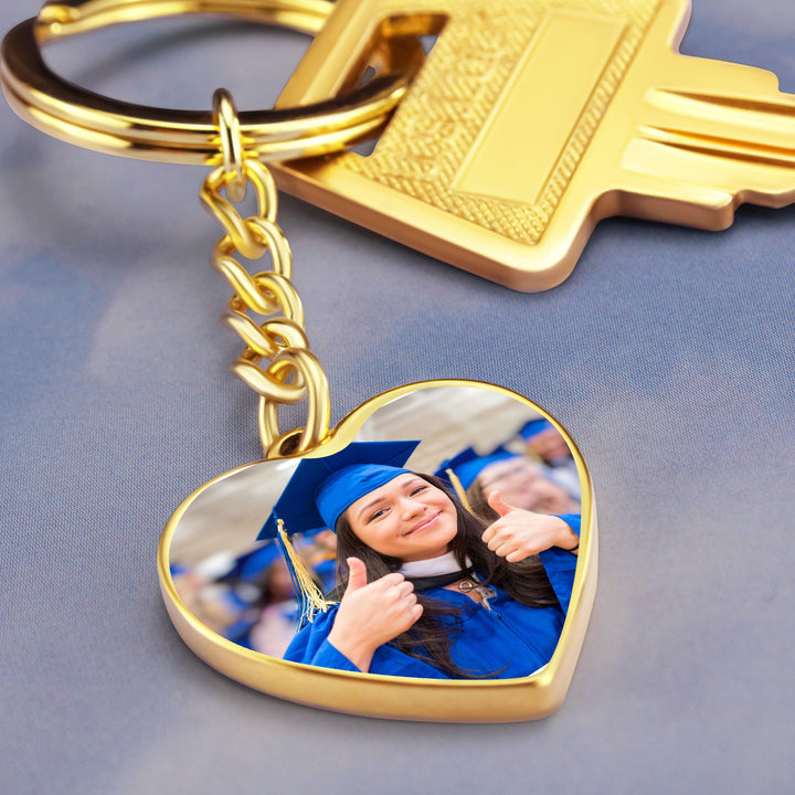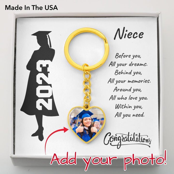 Niece Graduation Gift - Before You All Your Dreams Photo Upload Engraved Heart Keychain