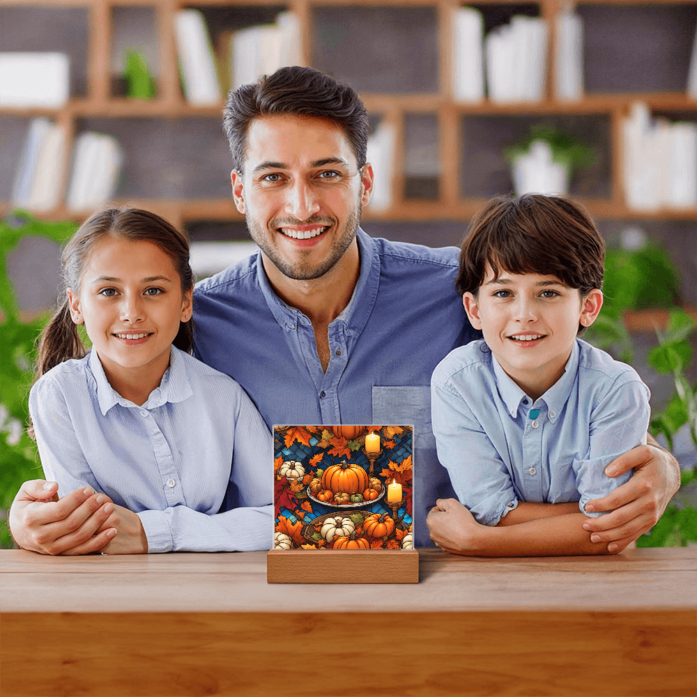 Crafted from crystal-clear acrylic and displayed on a wooden LED base, this piece brings soft light and color to any table, mantel, or entryway. Whether you’re decorating for Thanksgiving dinner or gifting someone special, this glowing display adds an unforgettable seasonal touch.