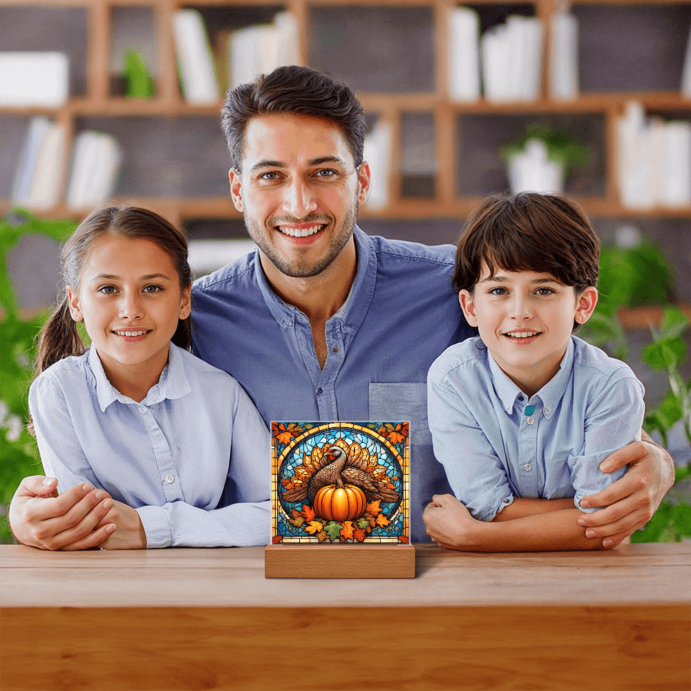 Each plaque is crafted from premium, crystal-clear acrylic and can be paired with a warm LED light base to illuminate the intricate details in stunning color. Perfect as a Thanksgiving table accent, mantelpiece display, or heartfelt seasonal gift for loved ones.
