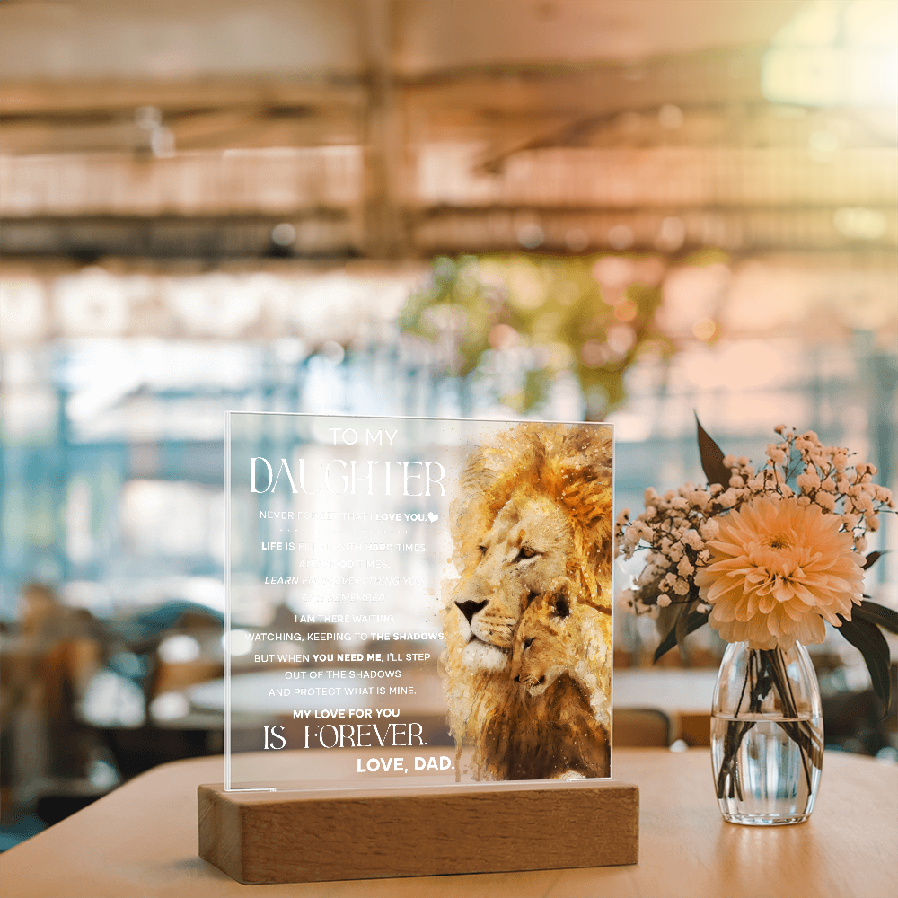 To My Daughter Lion Acrylic LED Plaque – “My Love for You Is Forever” Father Gift | Inspirational Lighted Keepsake from Dad