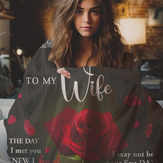 Give your wife a gift she will always treasure. This heirloom woven blanket bears a message from your heart: "To my wife, the day I met you, I knew I found my missing piece. You complete me and make me a better person. I wish I could turn back the clock to find you sooner and love you longer, I may not be your first date, your first kiss, or your first love, but I want to be your last everything. I love you forever and always, Love, your husband."